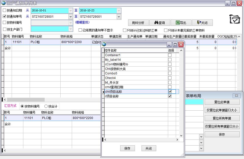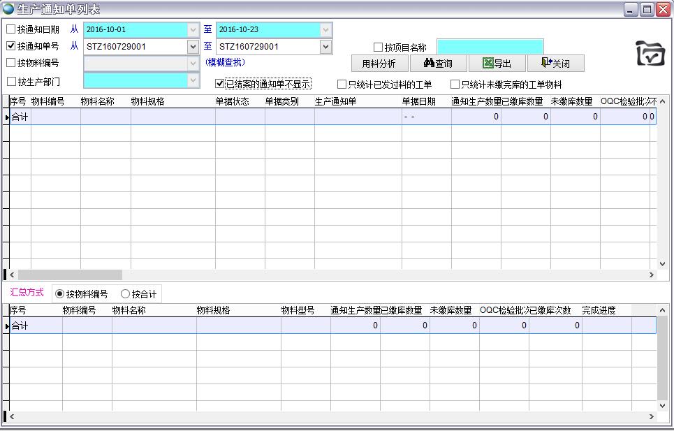 勾選此項(xiàng)后只顯示未結(jié)案的生產(chǎn)通知單