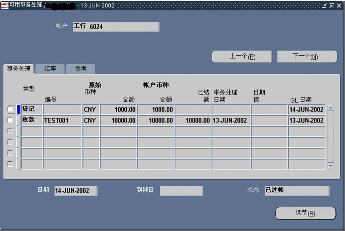 通過選擇相應的業務行,并如下圖所示輸入對應的費用和誤差值并調整結算金額就可以對已經處理的事務進行結算;如果有誤差或費用系統會自動在該行事務對應的模塊創建單據及分錄。