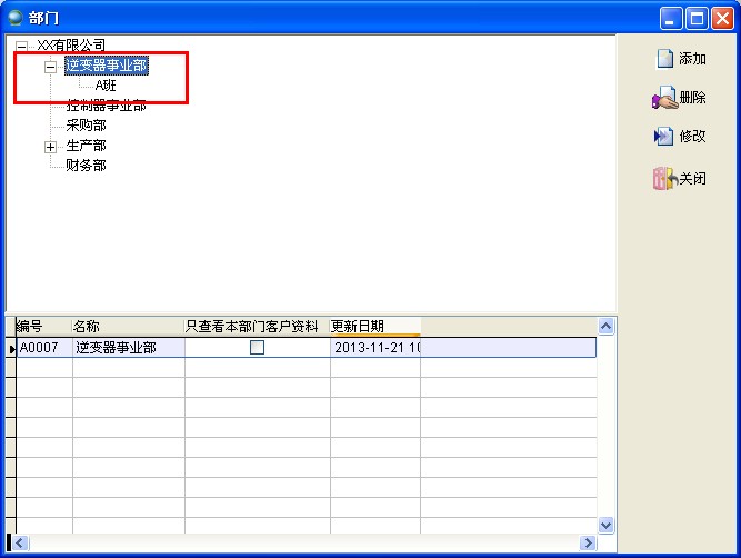 刪除時會刪除所選部門的所有下級部門,如下圖刪除逆變器事業部時會將A班也刪除。