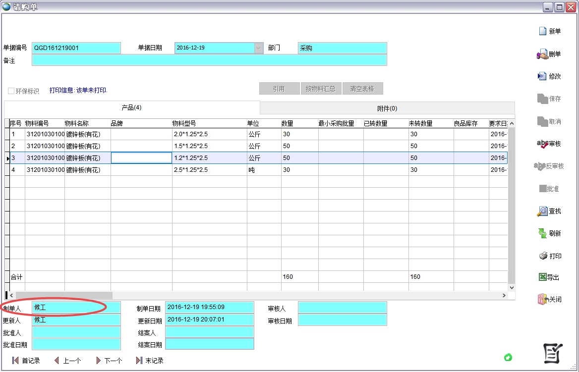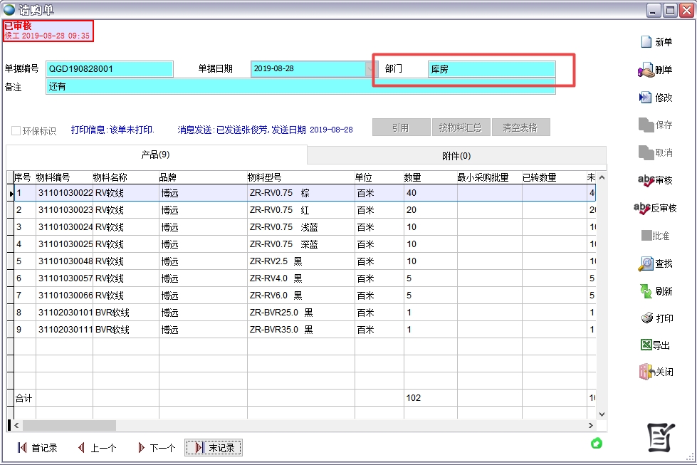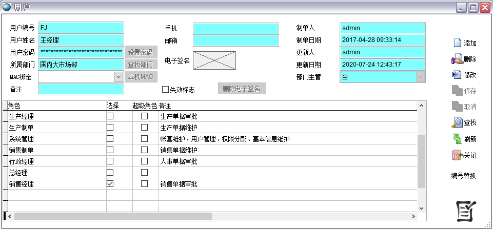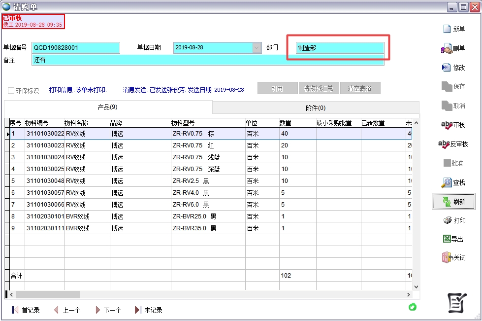 部門保存后不能更改部門編號,但是可以更改部門名稱,名稱更改后在單據中會馬上得到體現,如下圖將生產部改名為制造部: