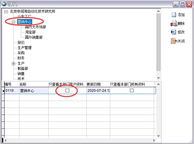 這個選項通常適用于有多個銷售部門存在的情況,業務員所在的銷售部門之間數據不能互相查看,如下圖,張總是銷售總監屬于營銷中心,可以看到所有的客戶信息。