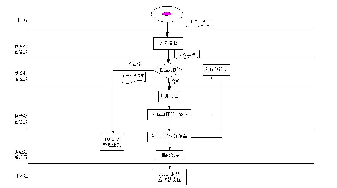2 根據(jù)相應(yīng)采購訂單、物料接收單、入庫單、供應(yīng)商發(fā)票匹配情況處理相應(yīng)應(yīng)付帳務(wù)。財(cái)務(wù)部保留入庫單、供應(yīng)商發(fā)票存檔。