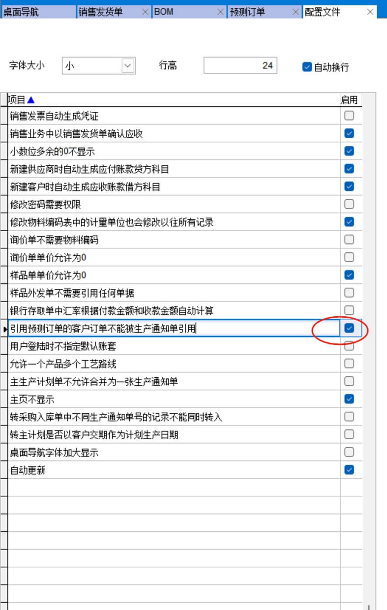 即生產通知單先引用預測訂單安排生產,有了正式訂單后引用預測訂單做客戶訂單,這個客戶訂單就不能再被生產通知單引用了,不然就會重復安排生產了。這個開關就是這個作用的,沒有勾選這個開關,客戶訂單可以被生產通知單再次引用的。