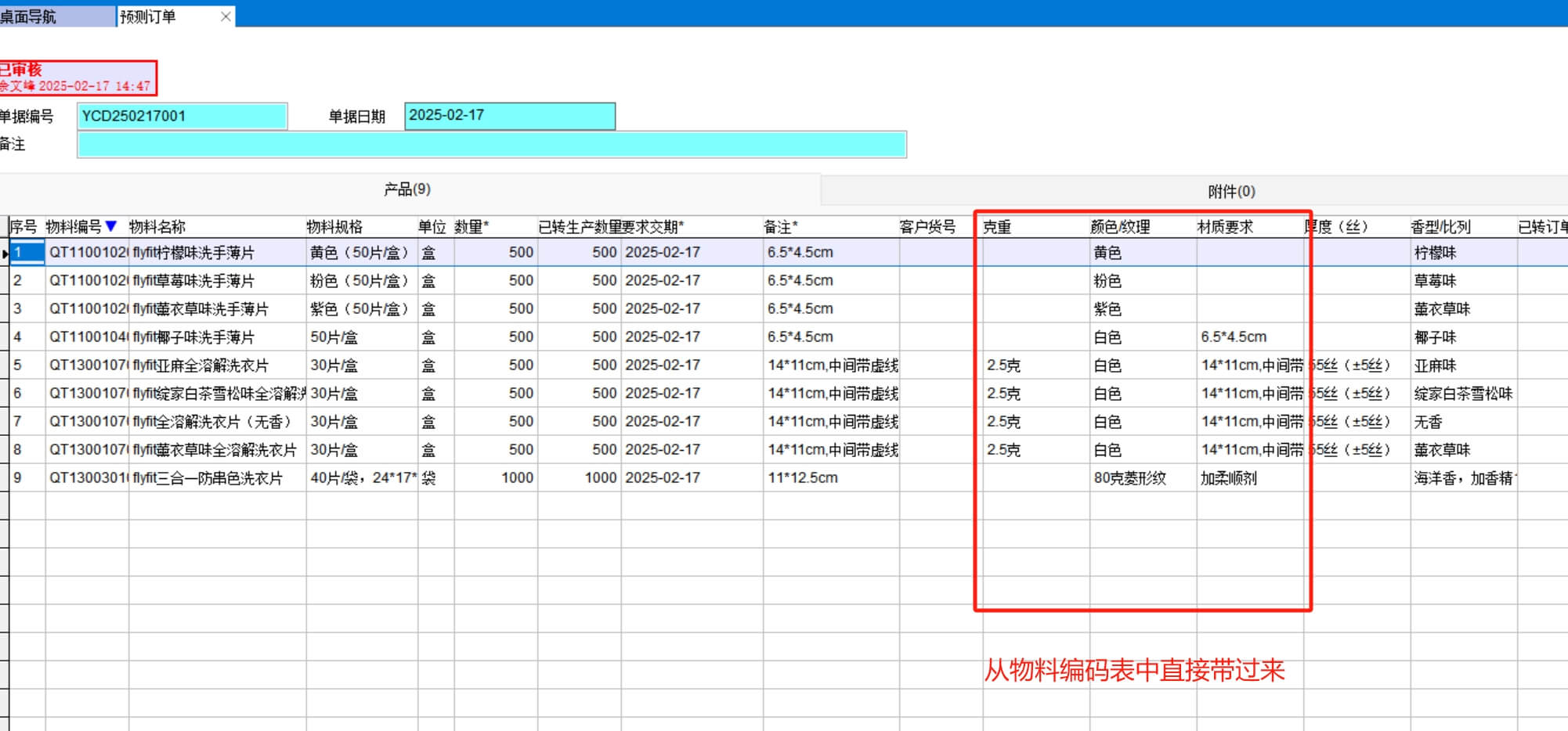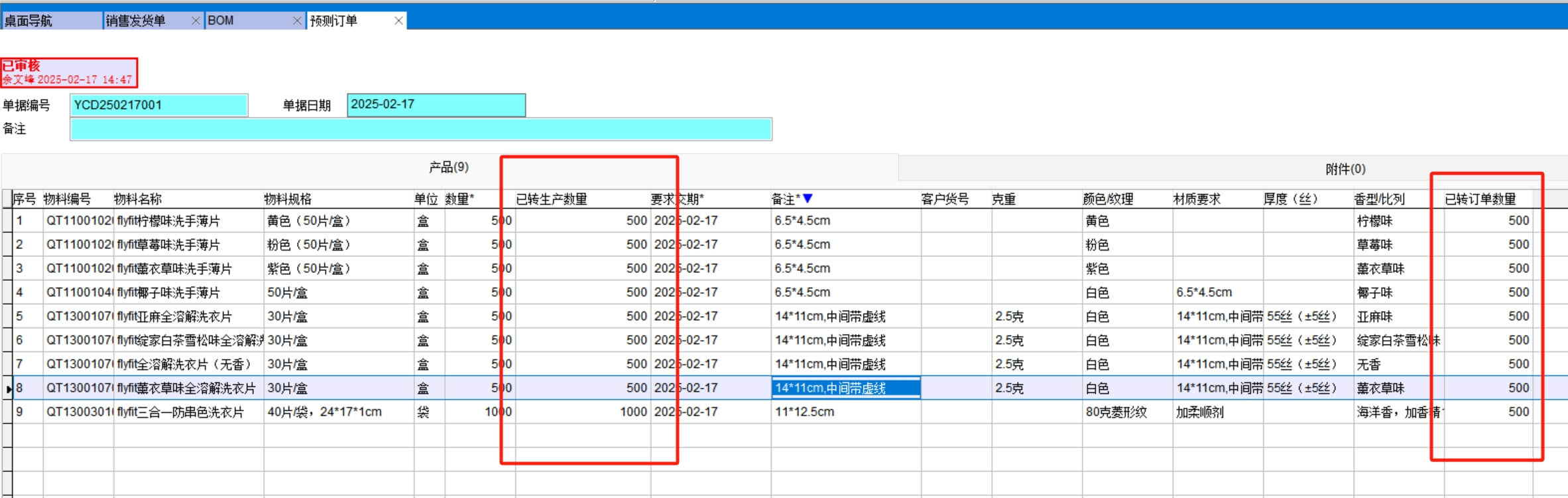 預測訂單轉客戶訂單后會顯示這個已轉數量