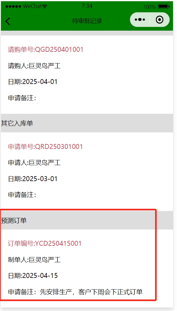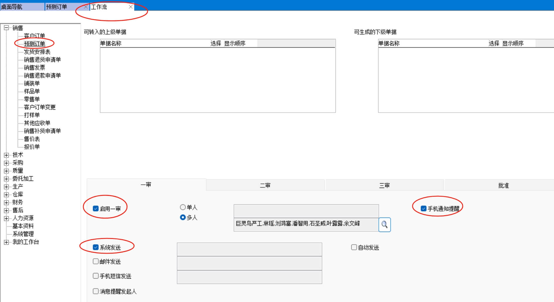 如上圖的審核,如果勾選的是單人審核,則有審核權限的人都可以審核,如果是多人審核就是一對一的審核,比如張三的預測訂單會發給李四審核、王五的預測訂單會發給趙六審核