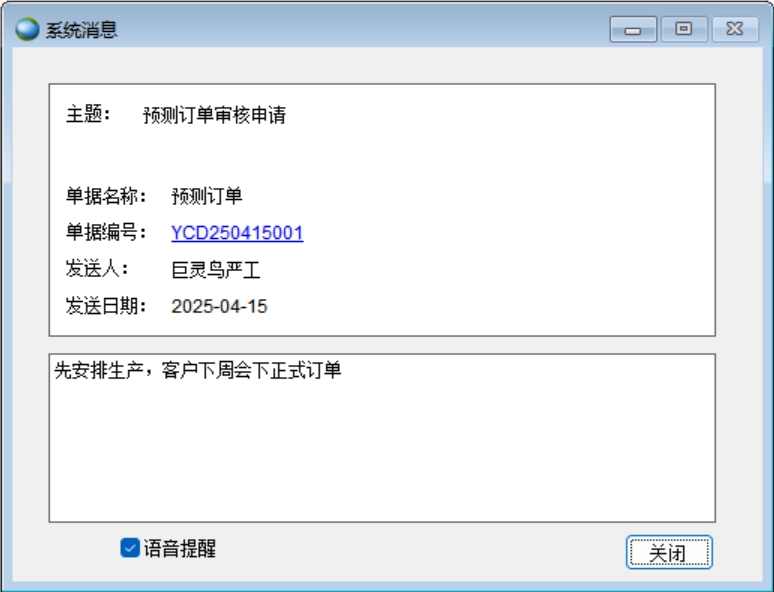 勾選了系統發送,審核人會彈窗顯示待審核信息