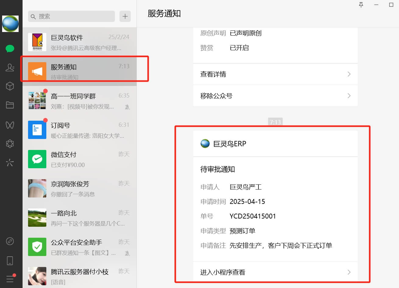 如果勾選了手機通知提醒,會在微信通知中提醒審核人員