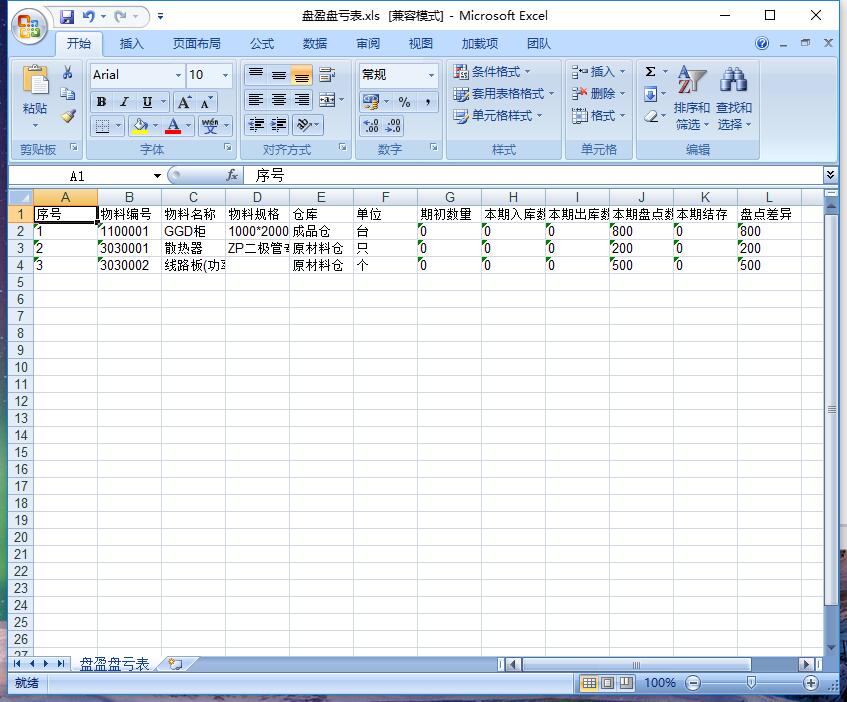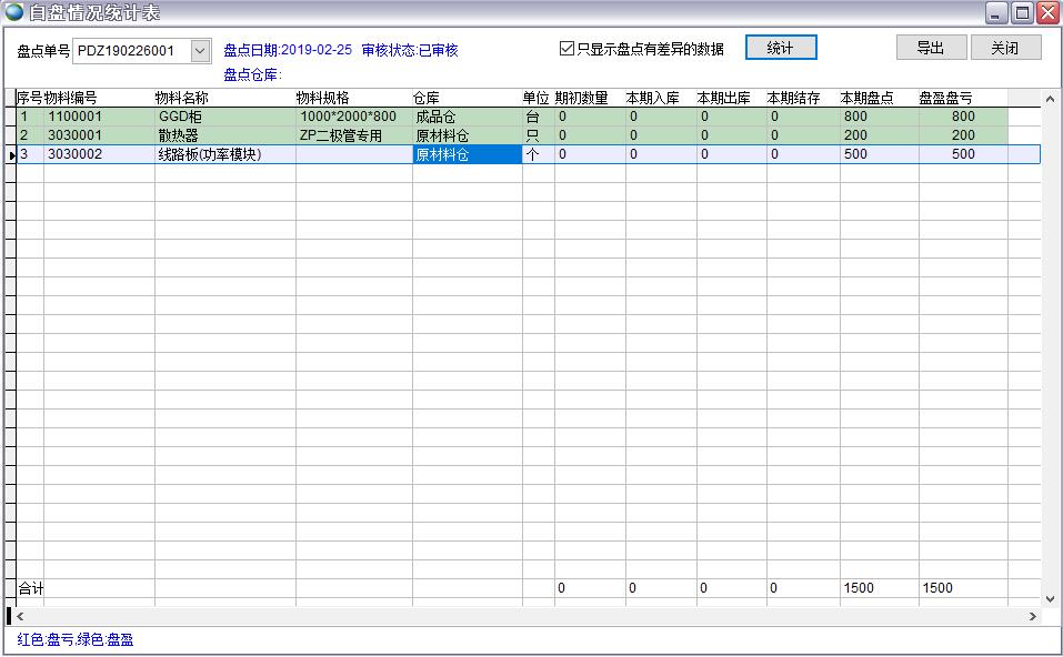 該統計表可以直觀的查看自盤單的盤盈盤虧情況(只限數量,不涉及金額)