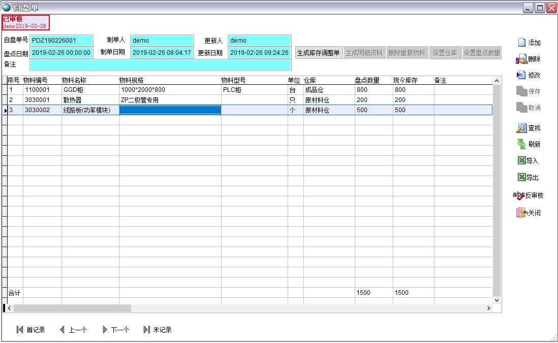 打開路徑:【主菜單】->【倉庫】-> 【庫存盤點】->【自盤情況統計表】