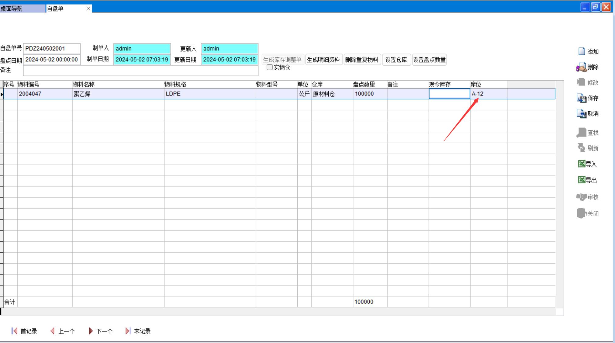 操作前的現(xiàn)今庫(kù)存