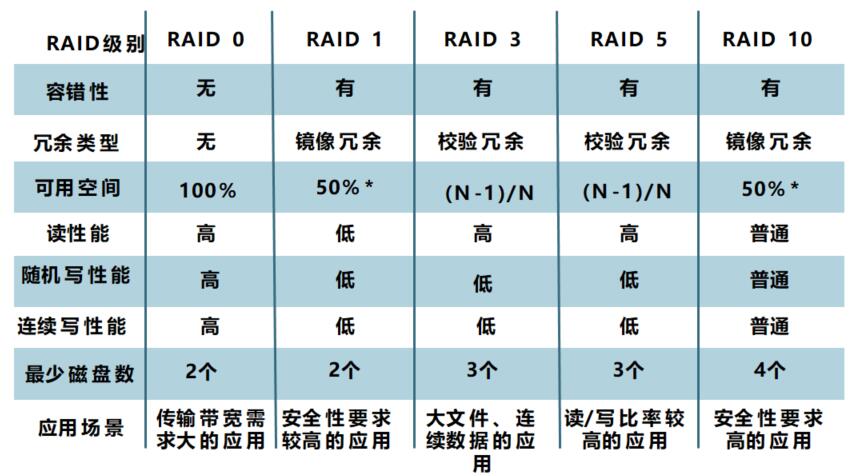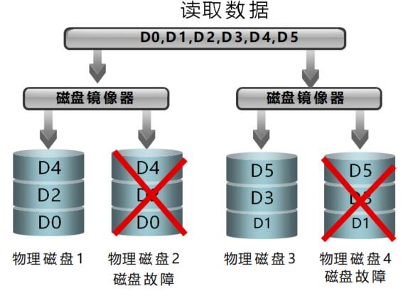 RAID 10是將鏡像和條帶進行組合的RAID級別,先進行RAID 1鏡像然后再做RAID 0。RAID 10也是一種應用比較廣泛的RAID級別