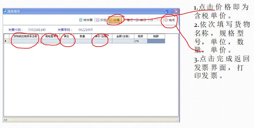 2.依次填入購買方信息,貨物名稱,規(guī)格型號,含稅單價,備注內(nèi)容。