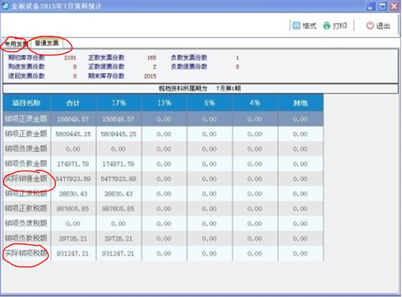與之前打印的金稅設(shè)備資料統(tǒng)計核對銷項稅額必須一致。