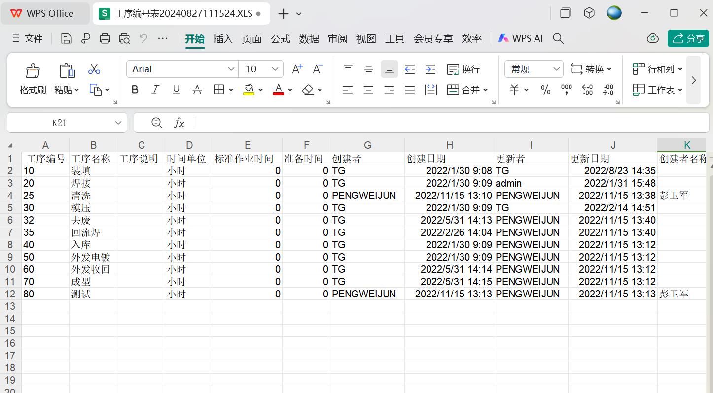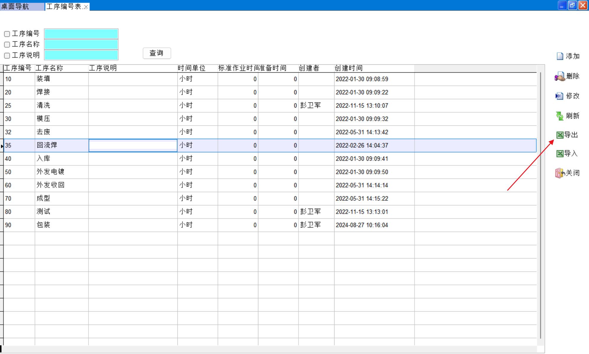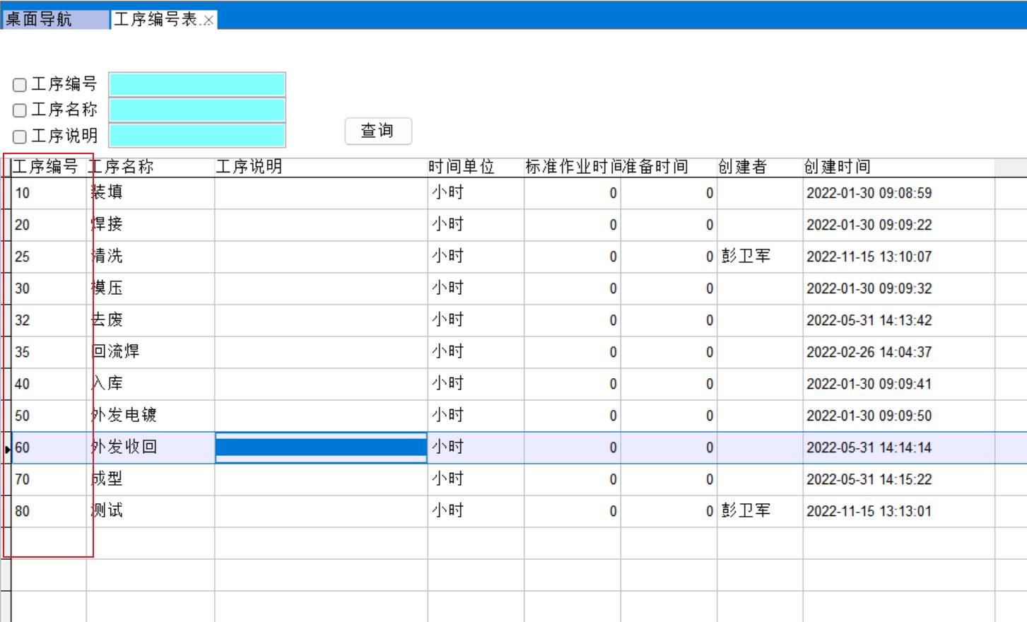 工序編號(hào)表是車間工序生產(chǎn)的一個(gè)基礎(chǔ)表,用來對(duì)所有工序進(jìn)行登記編號(hào)。