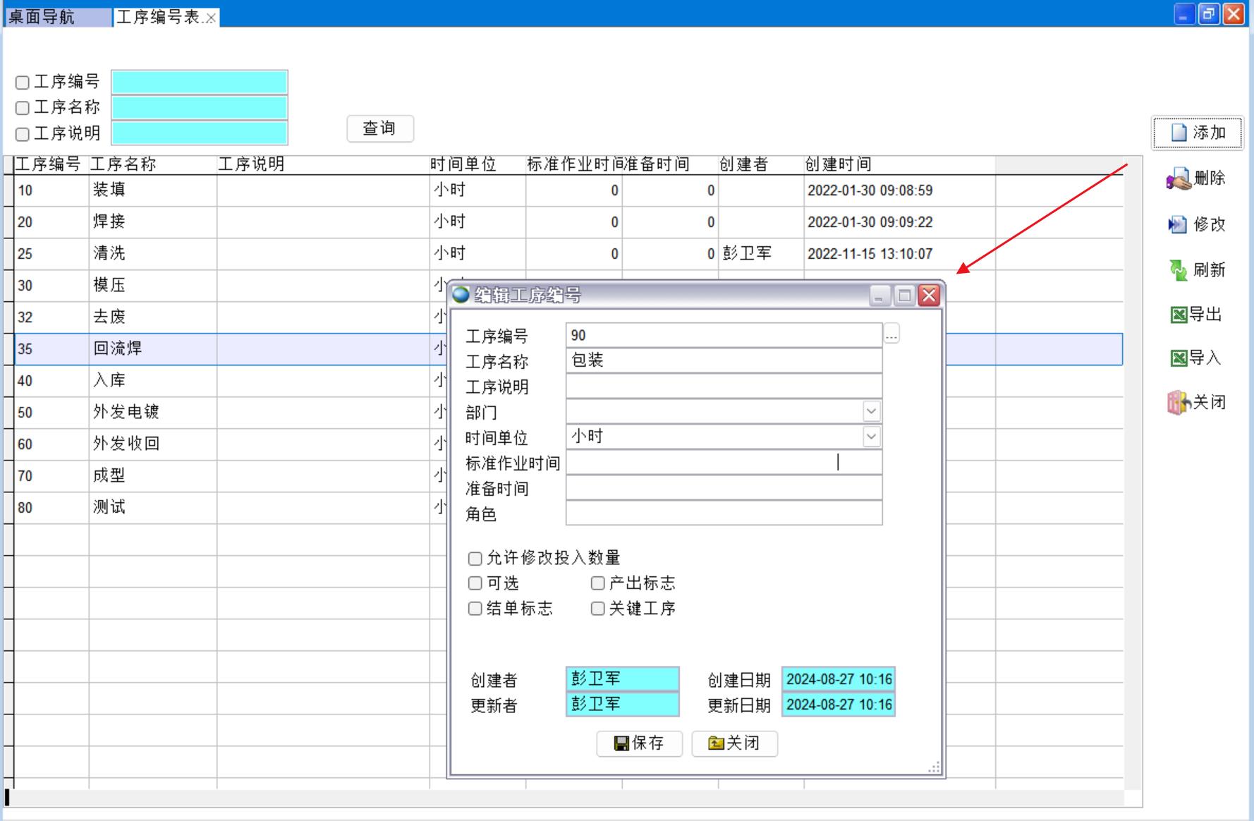 2、工序編號(hào)、工序名稱是必填項(xiàng)