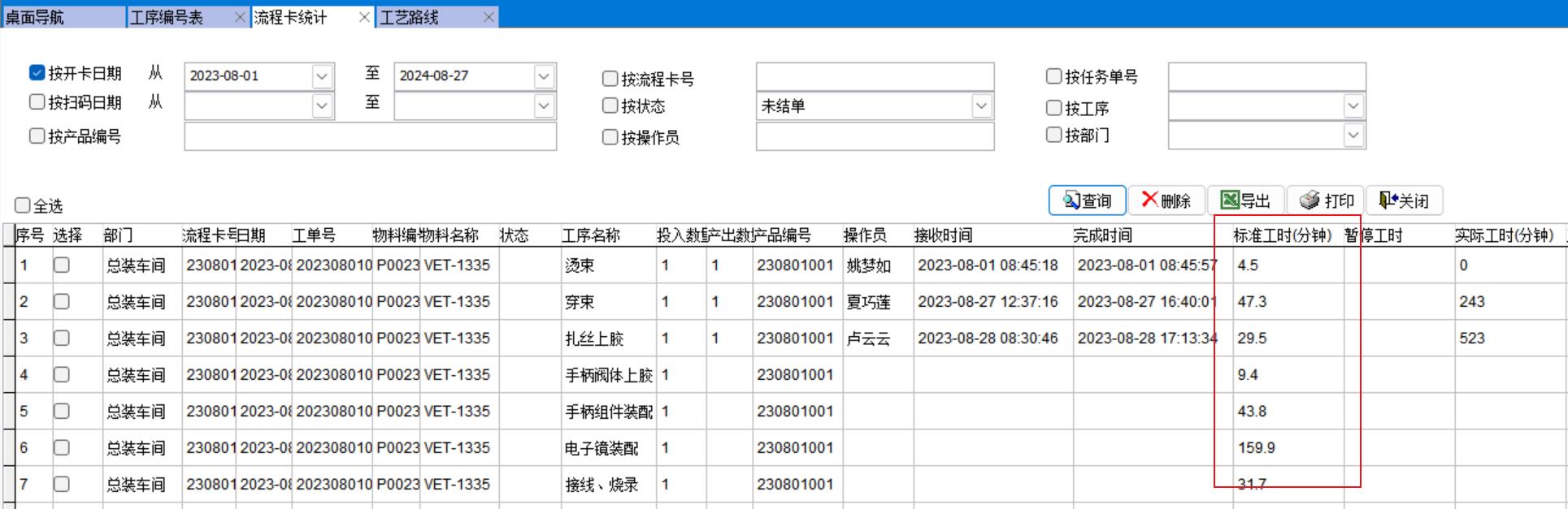 在員工工序報(bào)工后可以看到這個(gè)標(biāo)準(zhǔn)工時(shí)