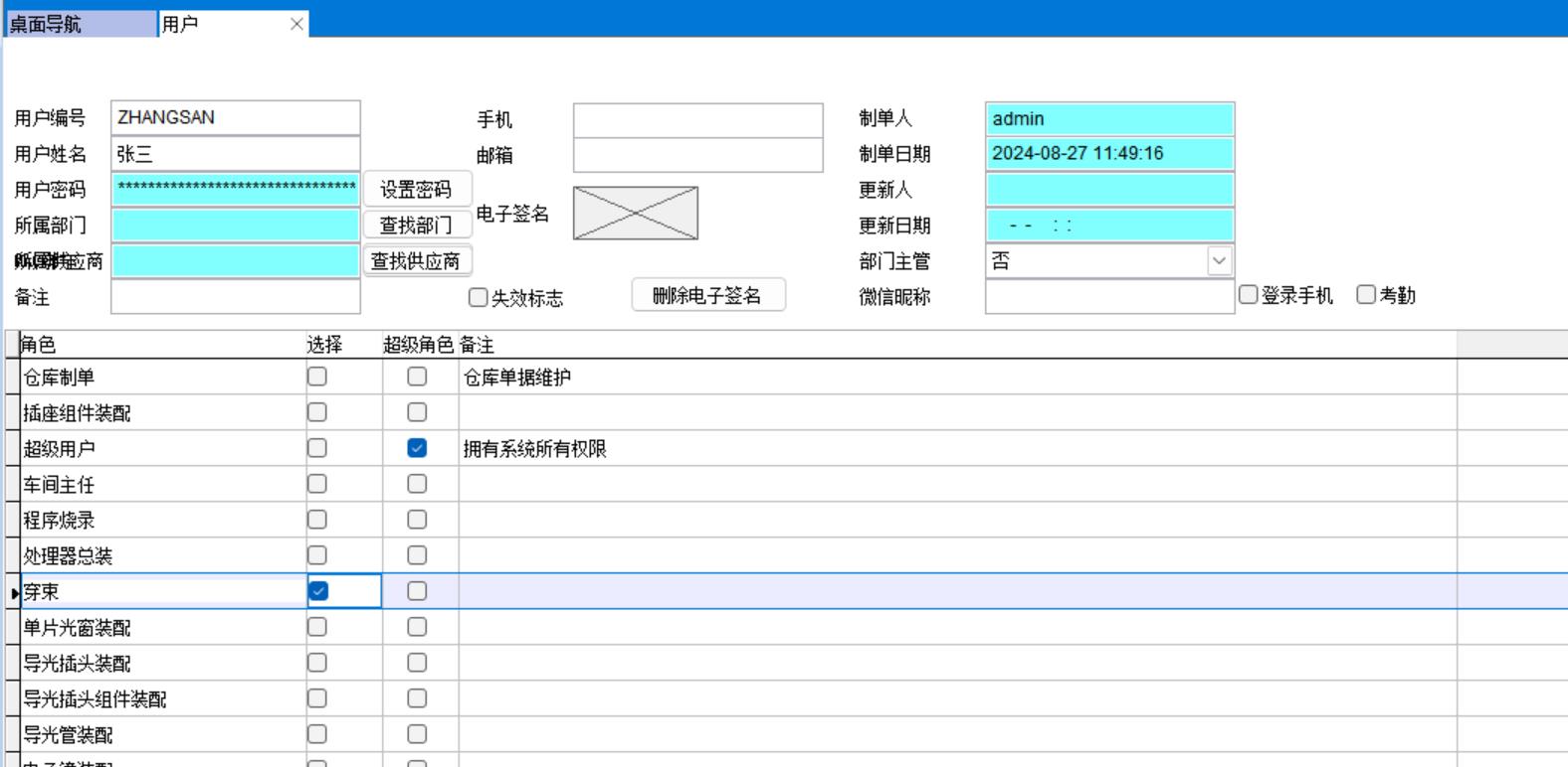 這樣張三李四可以完成燙束工序,王五沒有權(quán)限完成燙束工序,除非王五也選擇了燙束角色。