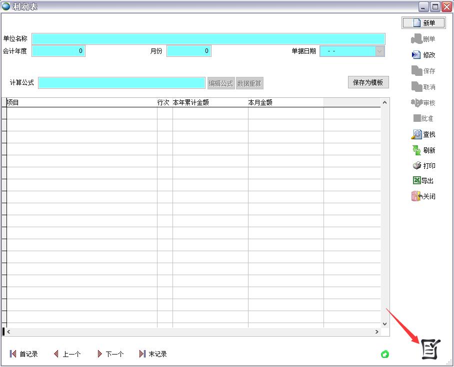 打開路徑:【主菜單】->【總賬】-> 【報(bào)表】->【利潤表】->右下角