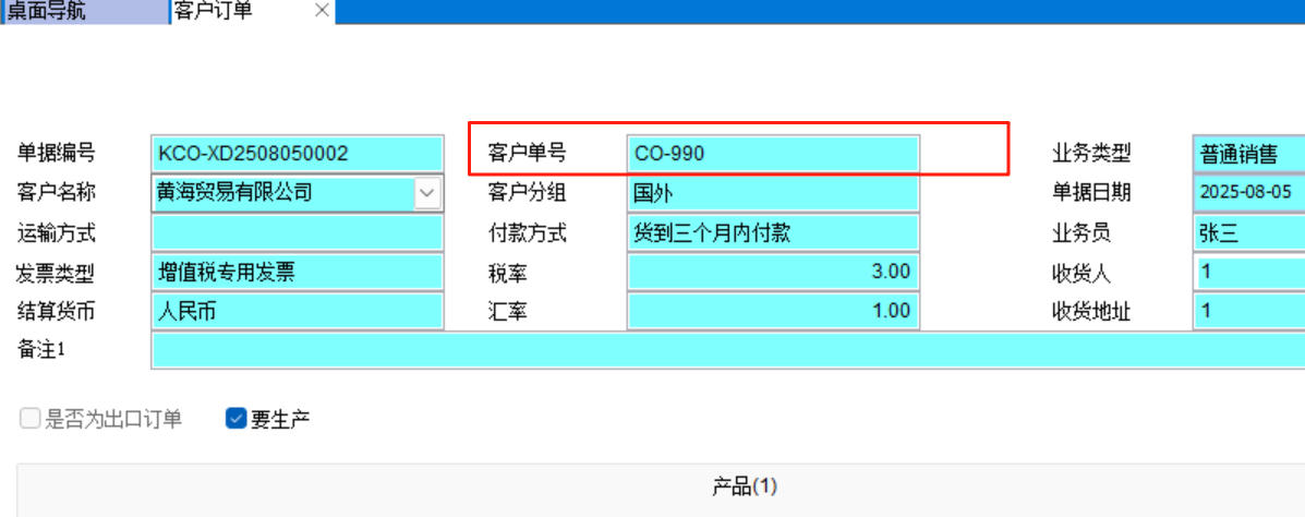 該訂單業務流程為客戶訂單->銷售發票->銷售收款->銷售發貨單