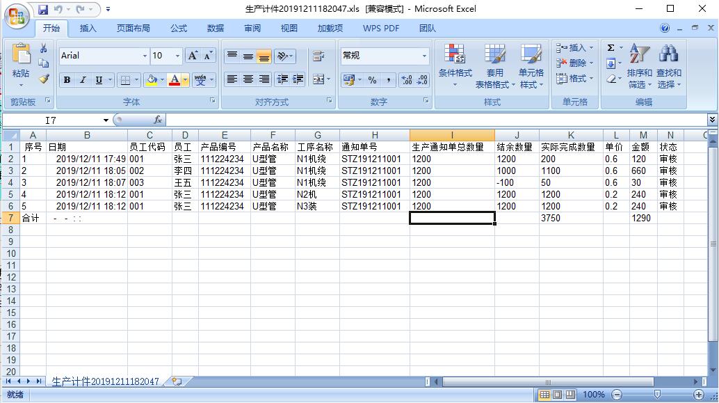生產計件記錄生產人員生產每道工序的生產數量和單價,做為產成品成本核算和人員工資就算的依據。