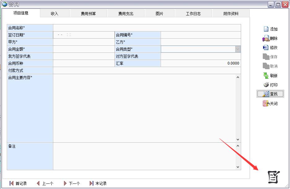 打開路徑:【主菜單】->【行政】-> 【合同】->【右下角】