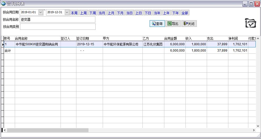 合同列表會列出所有合同清單,顯示合同名稱、合同金額、收入、費用支出等信息