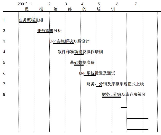 1、 閱讀營銷公司已有的與ERP實施有關的文檔 2、 對業務部門進一步調研 3、 就業務調查中相關問題(如業務調研的目的、方法、業務流程描述方法)的對營銷公司項目組進行培訓 4、 整理并提交業務現狀描述和業務需求文檔 5、 安裝NT平臺的Demo環境,用于ERP功能培訓。 |