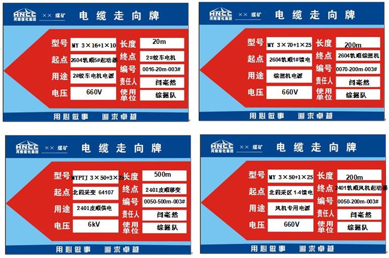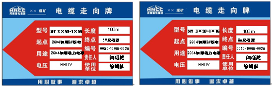 (一)電纜走向牌是指示這趟供電線路的起始饋電開關至下級饋電開關或起動器,起動器至設備電機。
