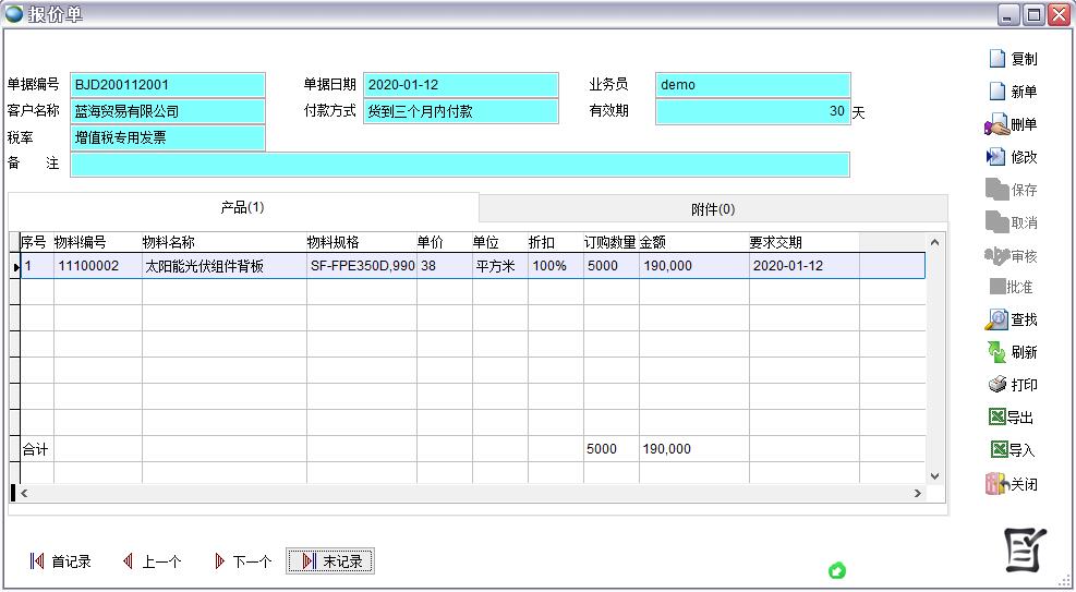 3、測試連接通過后重新登錄,用戶名:DEMO,密碼:1,選擇賬套:太陽能組件背板