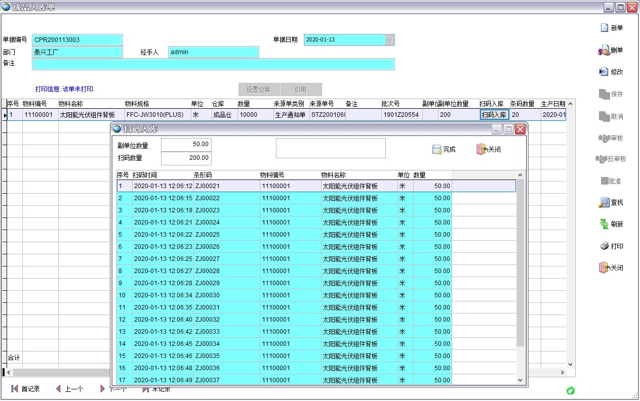 2、背板產品有嚴格的批次要求,同一批次產品所用到的主要材料氟膜、PE盡可能批次相同以避免產品出現色差等問題,因此對產成品和氟膜、PE等主材需要批次管理。
