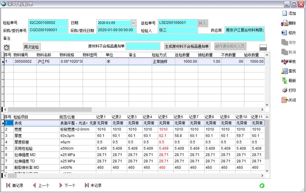 4、對產成品需要質檢,對關鍵生產工序如放卷、配膠、涂布、熟化、分切需要做生產記錄。對氟膜、PE等主材需要抽檢。