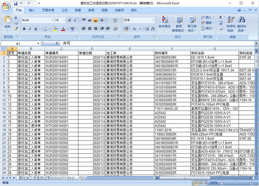 打開路徑:【主菜單】->【委托加工】-> 【報(bào)表】->【委托加工收退貨記錄】
