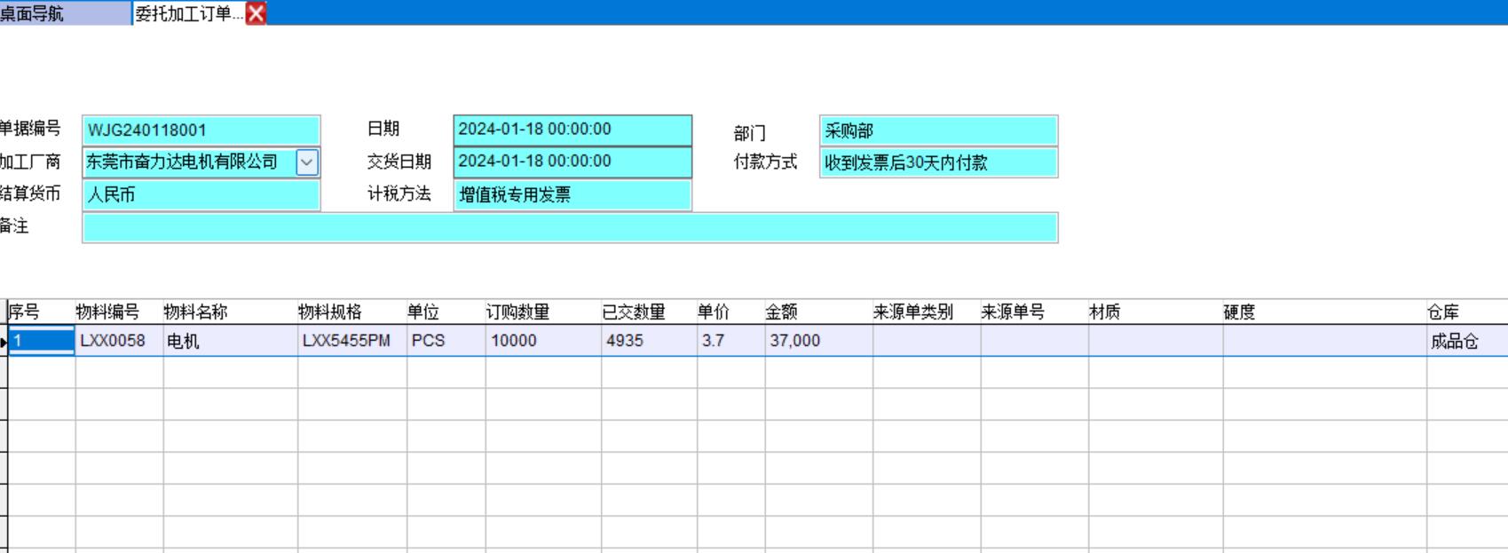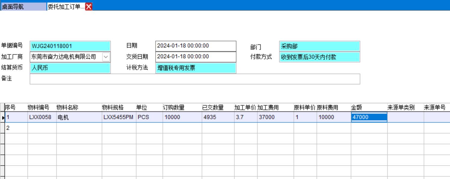 1、委托加工訂單