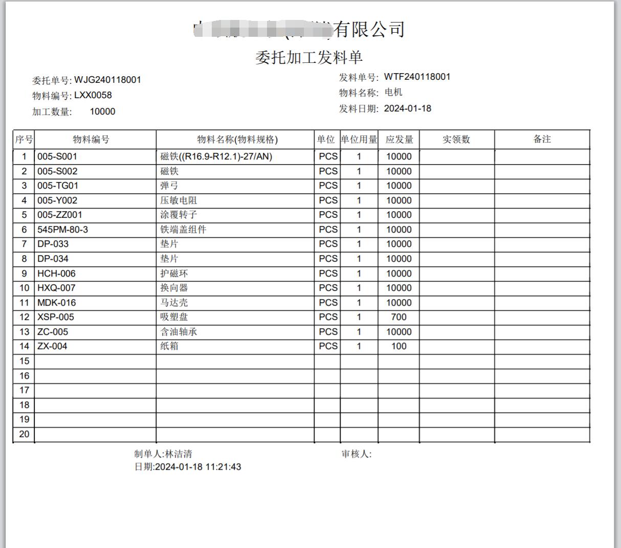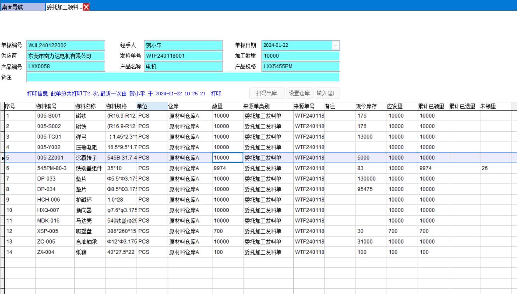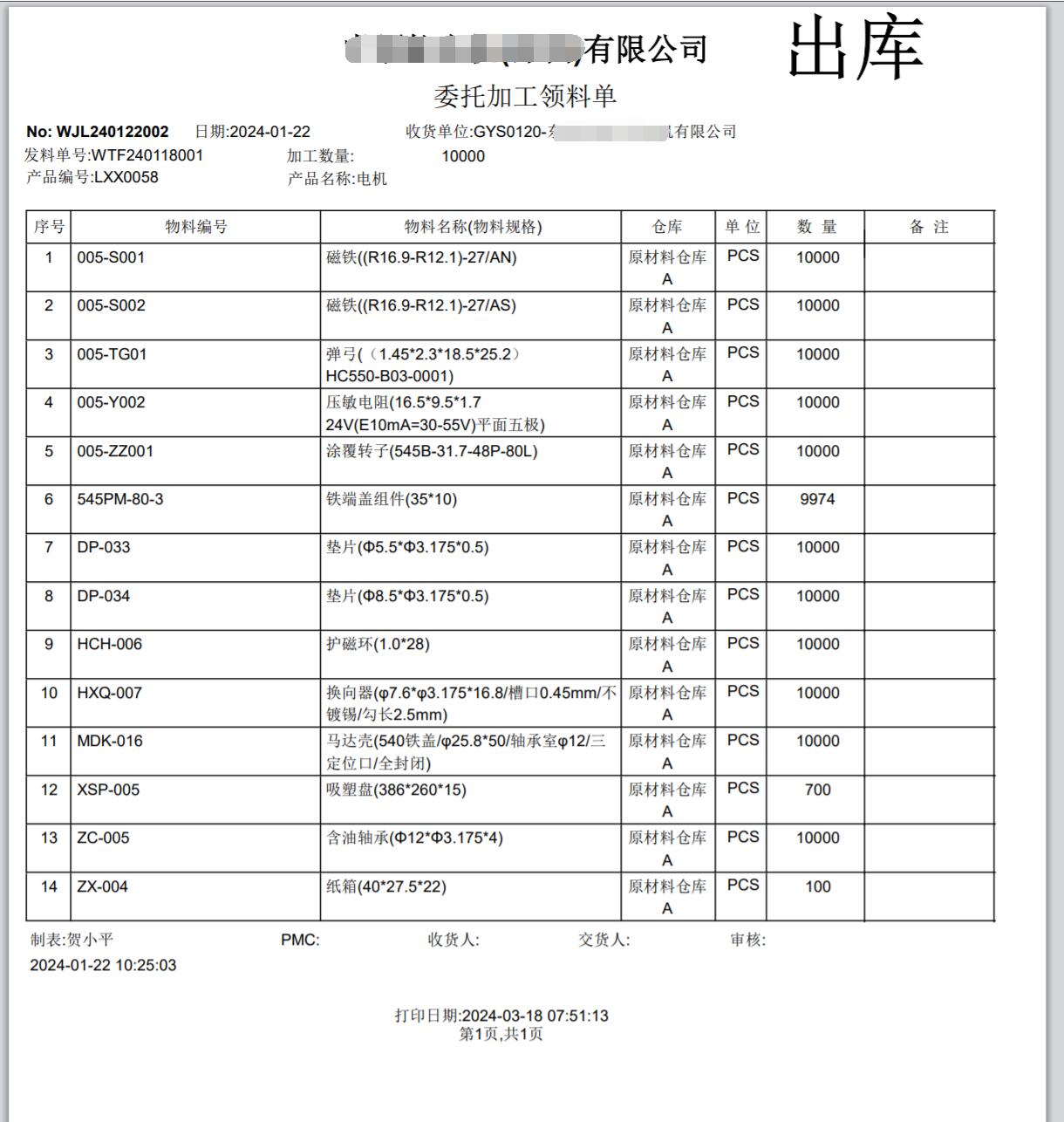 即材料出庫單,外發給加工商。通常會打印出來隨貨發給加工商
