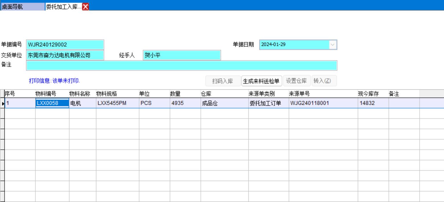 5、委托加工入庫單