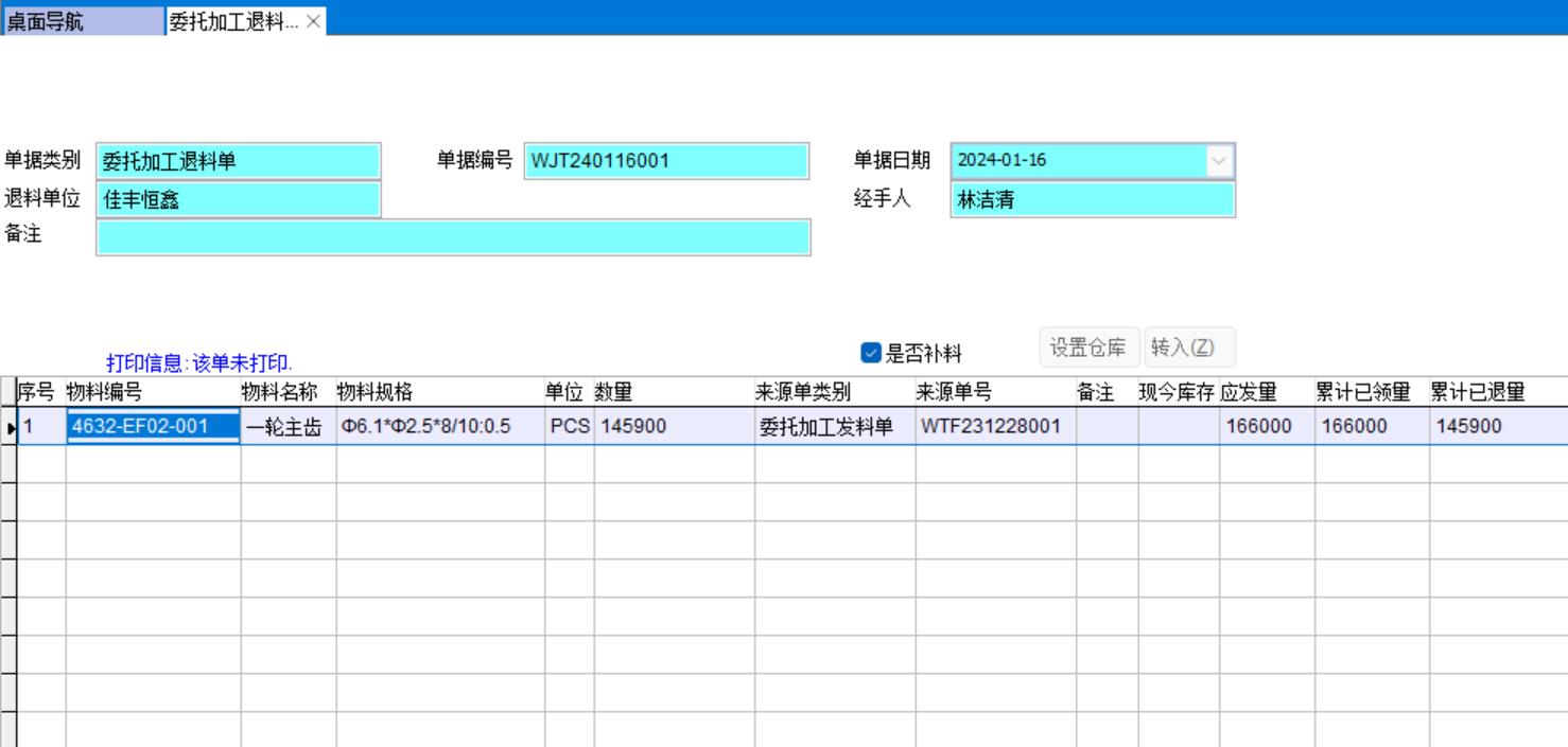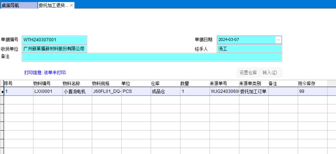 7、委托加工退貨單
