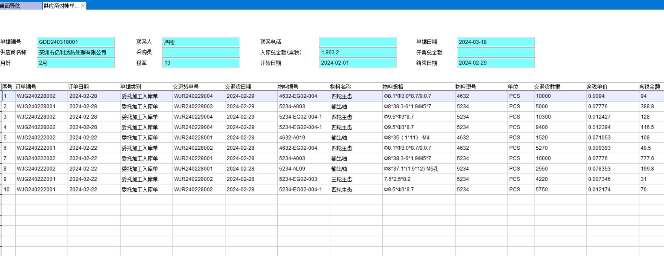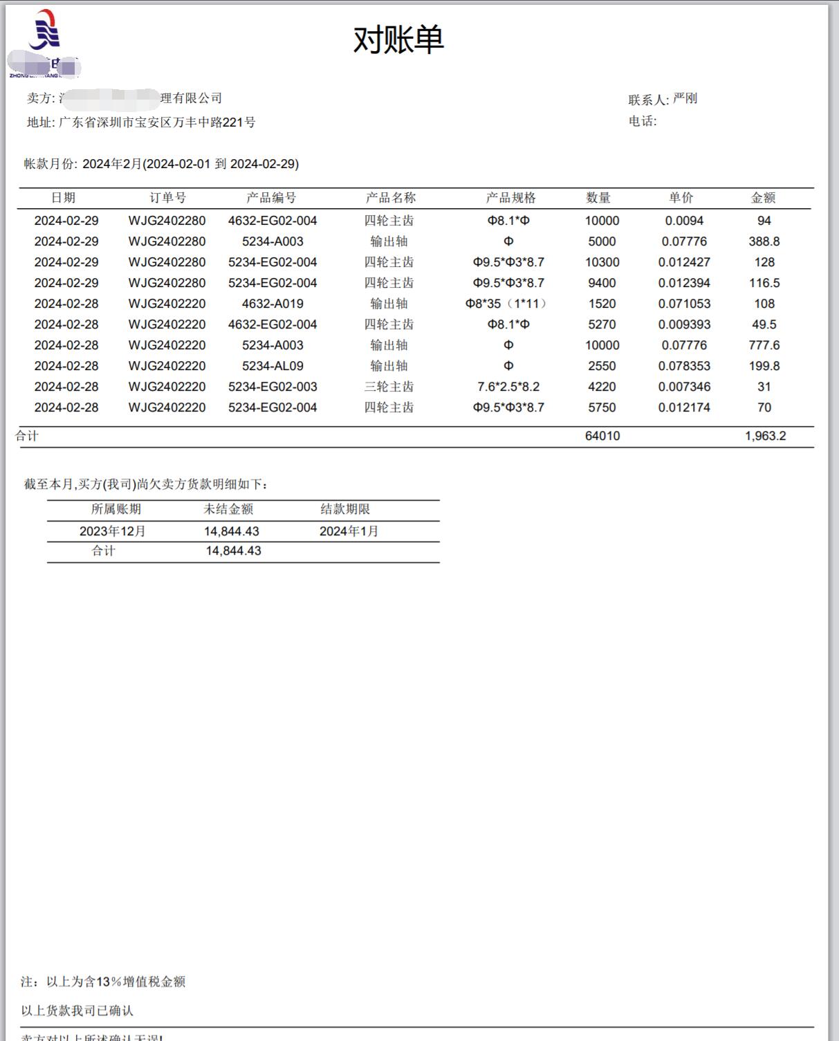 與加工商對賬,包括涉及的出入庫明細、可能的扣款