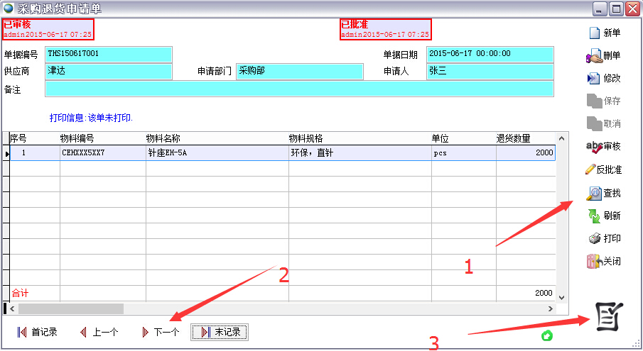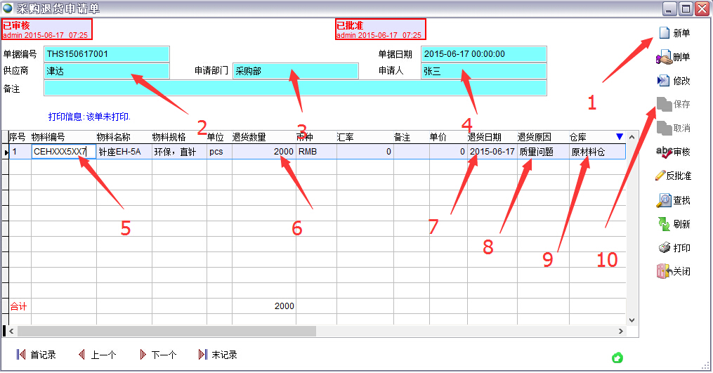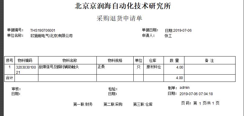 2、直接用原材料退貨單