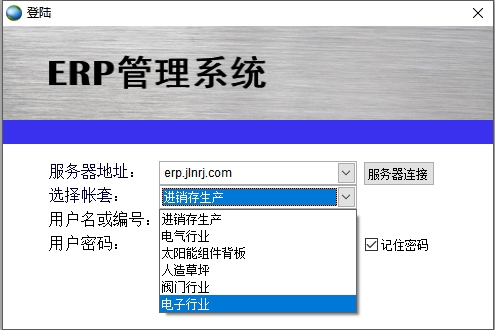 3、測試連接通過后重新登錄,用戶名:DEMO,密碼:1,選擇賬套:電子行業