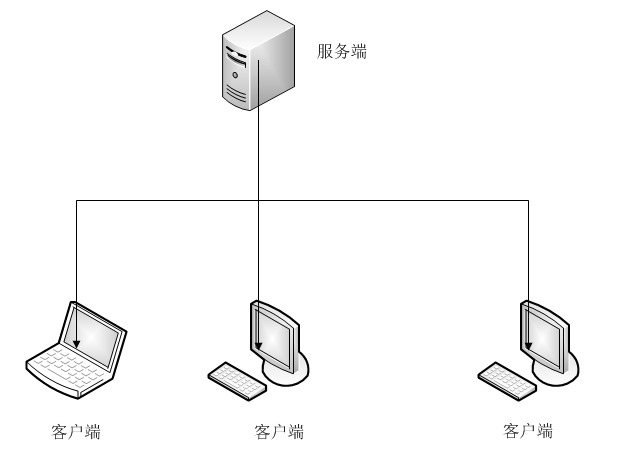 巨靈鳥5000網絡結構圖如下,所有客戶端通過網絡(局域網或互聯網)連接到服務端,所有數據都是存儲在服務端上,客戶端通過程序(巨靈鳥5000)訪問服務端上的數據完成對數據的查詢和修改。