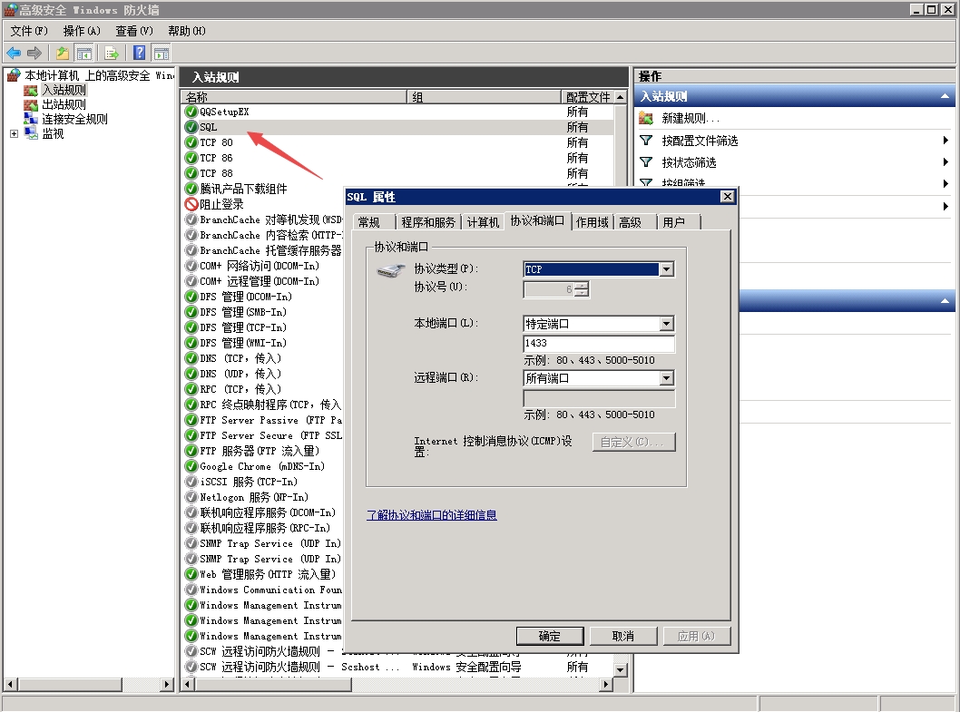 關閉防火墻或開放7788端口(使用GSQL)、1433端口(使用SQL SERVER)