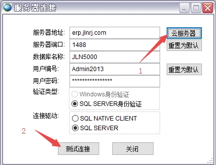 如果是連巨靈鳥云服務器,只需點云服務器,再點測試連接即可連通