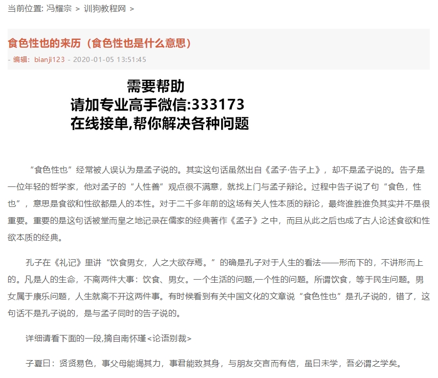 和網站主題完全無關,如果你在百度上搜SEO相關詞你是絕對搜不到這個網站的。這個網站的存在就不是給網民看的,它是通過每天大量發偽原創文章來取悅搜索引擎獲得高權重來獲得廣告分成的。如果你想按它的套路來推廣你公司的品牌和產品那就是死路一條。