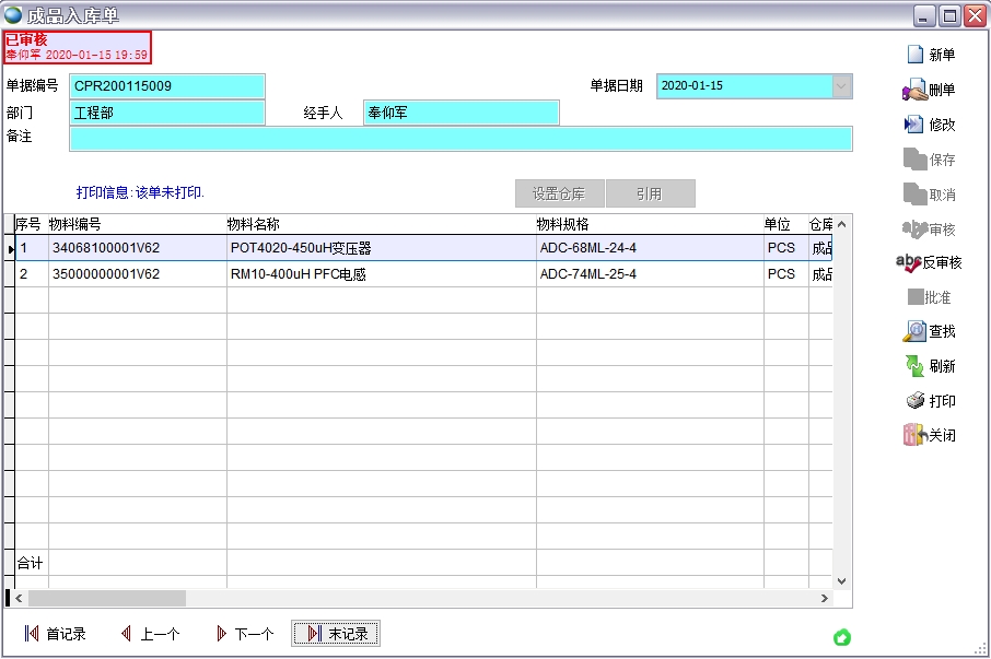 其他的功能還有調撥單、庫存調整單、借還料單、樣品外發單等。