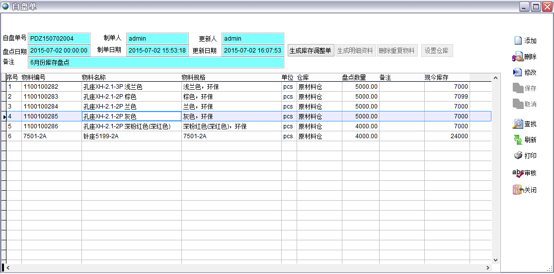庫存盤點,包括自盤單、盤點票、盤點表、盤盈盤虧表。