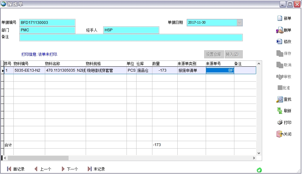 報廢單,包括報廢申請單、報廢單、報廢統計表。