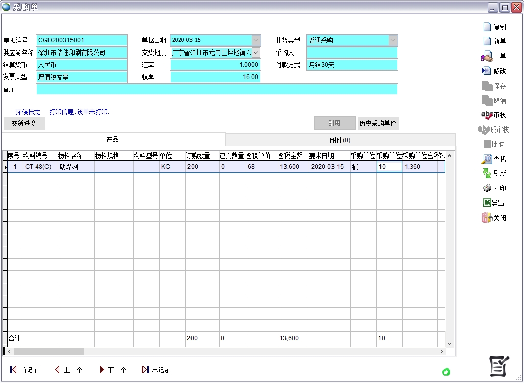 做采購單時如果是固定換算率,采購單位數量、主單位數量任一填寫一個即可。如果是浮動換算率,主單位數量和采購單位數量都要填寫,填寫后系統自動計算換算率。