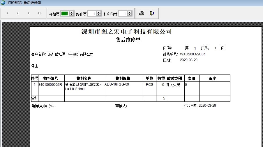 售后維修單是用來記錄銷售給客戶的商品進行維修記錄的單據。售后維修單不僅可以記錄商品發生故障的原因,還可以記錄維修產生的費用、維修中領用的維修材料,可以做為向客戶收取維修費的憑證,也可以做為統計維修成本的憑證。