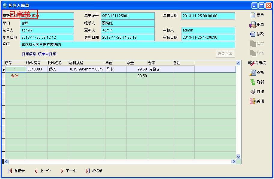 其它入庫單是指采購入庫、產成品入庫之外的其它入庫業務,如沒有采購單的物料入庫。其它入庫單一般手工填制。