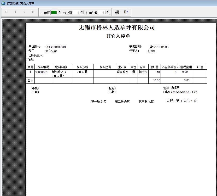 查看庫存 在物料編號中點鼠標右鍵可查看庫存 打印 可通過打印模板修改打印格式 導入 1、點新單 2、點導入 3、格式必須按安裝目錄\數據導入模板\其他入庫單.xls格式 4、導入后 入庫單價和金額 如果沒有出現單價和金額,可以在表體布局中設置 由于沒有引用任何單據,其它入庫單單價需手工填寫 也可以不直接在其它入庫單中填寫單價,比如其它入庫單是由倉庫制單,但倉庫不知道單價多少,倉庫只管數量 其它入庫單制單后,由財務在入庫單金額維護中補上單價